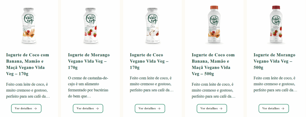 É inegável que a Vida Veg se tornou uma das marcas de referência e um nome bastante diferenciado no segmento plant based nacional. Seu diferencial reside no maior e mais variado portfólio de produtos à base vegetal do Brasil, abrangendo desde Leites frescos Vegetais e Iogurtes até Queijos, Cremes, Pastas, Manteigas e Sobremesas. Com presença em todos os estados brasileiros, a Vida Veg reafirma seu propósito de facilitar o acesso a alimentos de base vegetal, contribuindo para um mundo onde o prazer de comer se alinha perfeitamente com o cuidado com a vida e o meio ambiente.