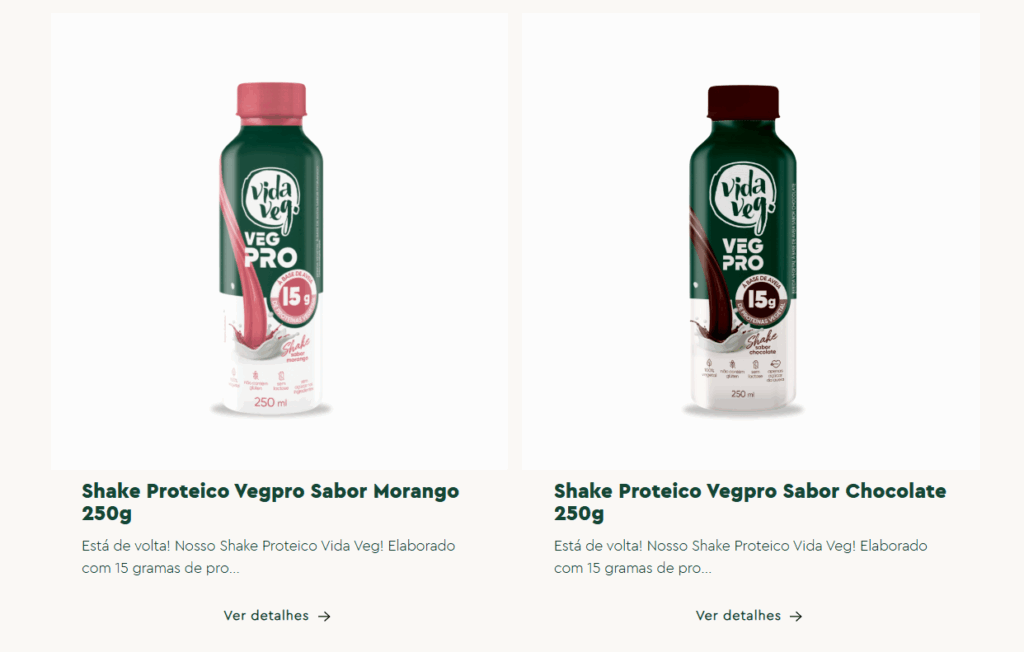 Para quem busca uma dose extra de energia e proteína de forma prática e deliciosa, os Shakes Proteicos Vegpro da Vida Veg são a solução ideal. Disponíveis em embalagens de 250g, esses shakes prontos para beber são elaborados com 15 gramas de proteína vegetal por garrafa, oferecendo um suporte nutricional robusto para sua rotina. Com sabores clássicos e adorados como Morango e Chocolate, que inclusive estão de volta, esses shakes combinam o prazer do sabor com a funcionalidade de um suplemento, tornando-se perfeitos para qualquer momento do dia.